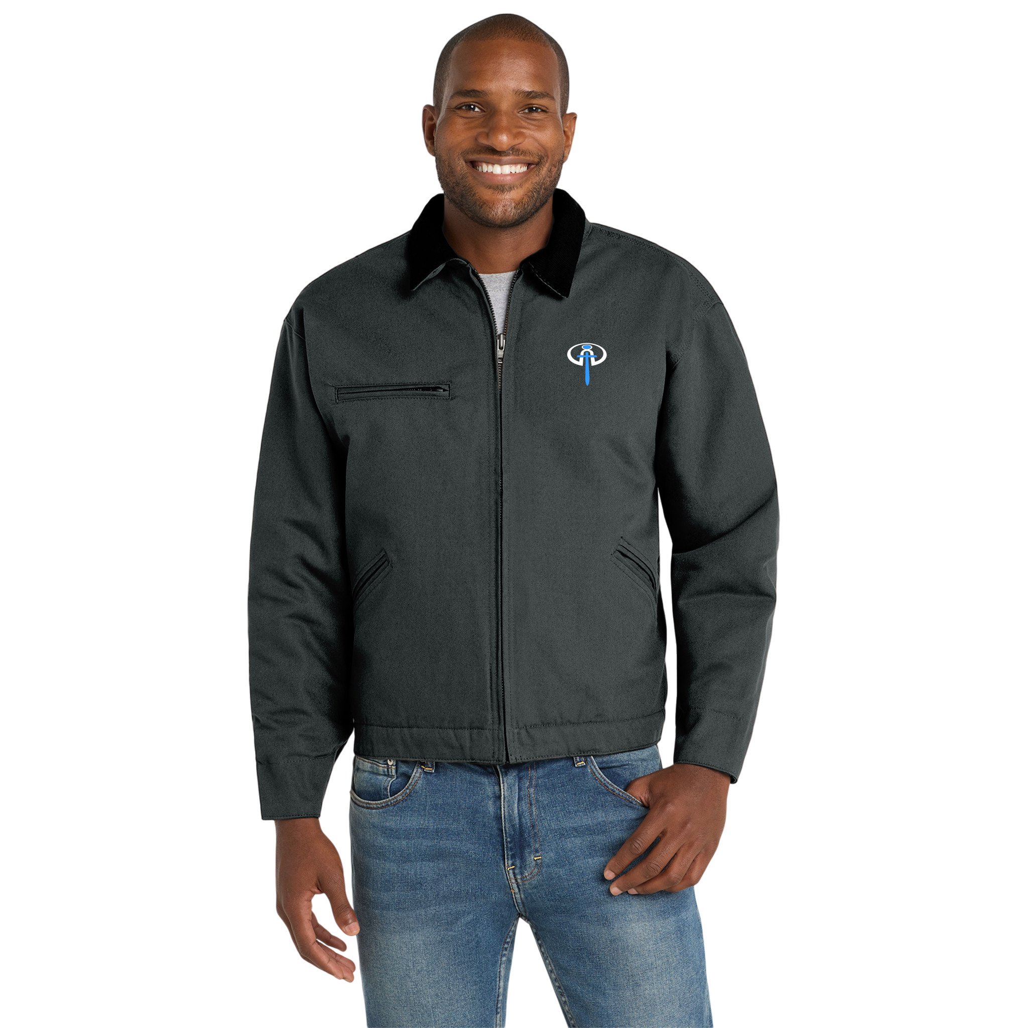 This rugged duck cloth jacket brings dependable, work-ready construction into everyday wear. Built from heavyweight 100% cotton duck cloth with a dyed-to-match nylon lining, it stands up to long days outdoors while staying comfortable against the body. Functional details — corduroy collar, zip chest pocket, angled front slash pockets, adjustable snap cuffs and waist tabs — keep tools and hands secure and let you dial the fit. A clean, embroidered emblem on the chest adds subtle character without shouting. Wear it on site, at the workshop, or for weekend projects when you want something that looks classic and simply holds up.